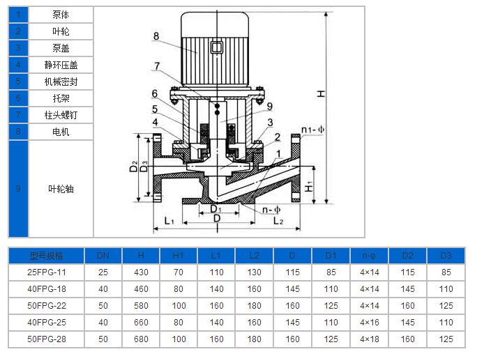 FPG增强聚丙烯管道泵性能参数表